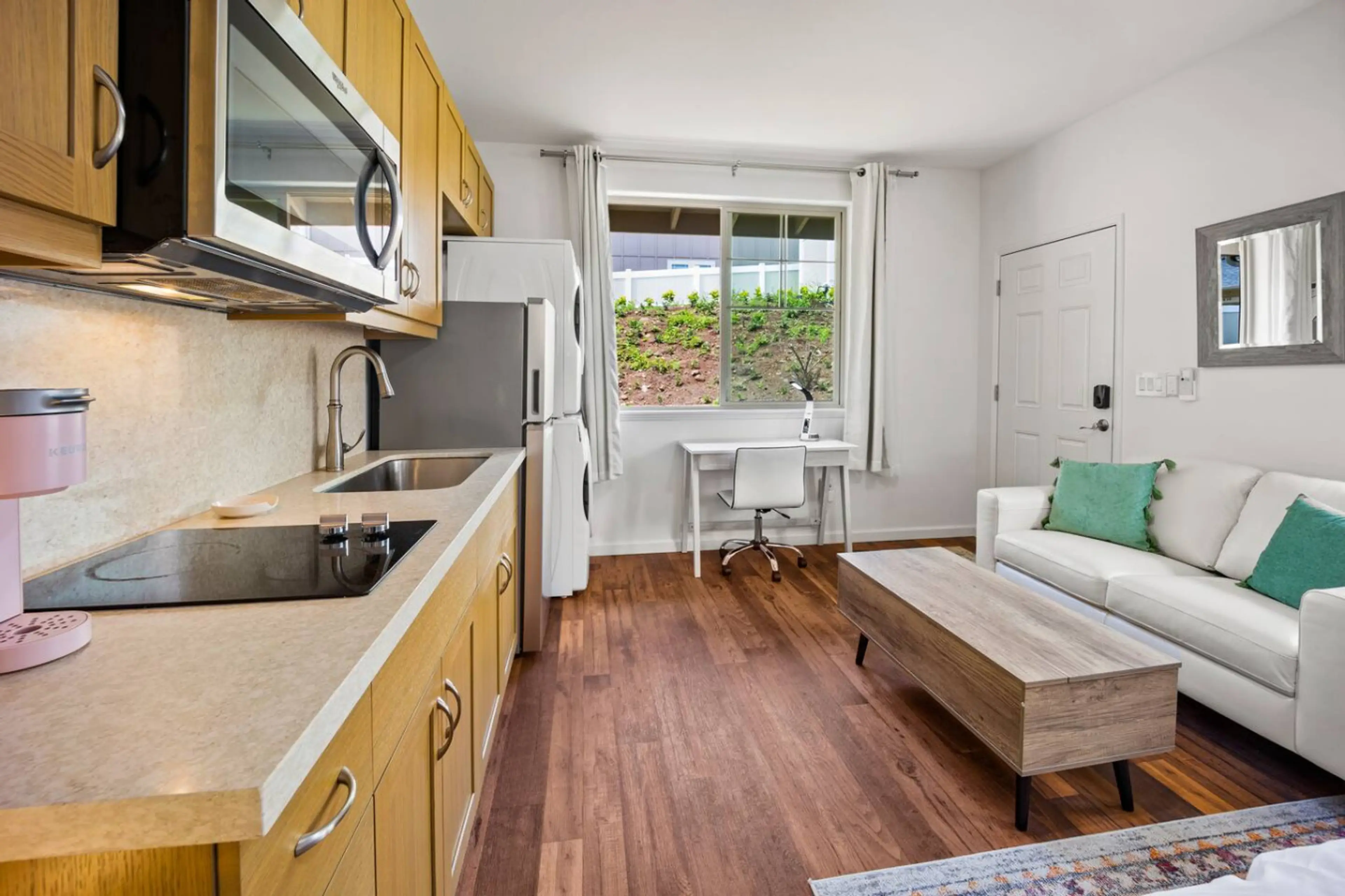 Aloha! Come and rejuvenate yourself in this serene retreat in the beautiful Makaha Valley in Hawaii. Studio Nene (360-ft) has elegant interior design and lush tropical garden. A highly-praised extra comfy king bed, the cute kitchenette, ensuite washer/dryer, and a desk facing the gorgeous backyard a...